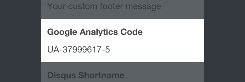 It’s really easy to integrate Google Analytics with all of our themes! Once you’ve got everything set up in your Google Analytics account, you just need to find your Property ID, the one that looks like this – UA-12345678-9 – and paste it into the Google Analytics Code field on your theme Edit Theme page: